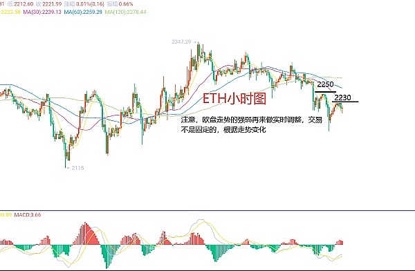 12月27日以太坊(ETH)合约技术面分析:今日方面,大周期日线级别昨日报收中阴线,K线形态上连阴下跌,附图指标死叉向下放量运行,且价格有效向下破位前期的低点位置,价格在均线下方被压制明显,那么今日我们还是要先看延续向下破位的;短周期小时图昨日日内下跌开跌口位置在2275区域附近,欧盘修正后美盘小幅反抽在2250区域二次承压回撤,低点在2180区域附近,当前价格在低位横盘整理,K线形态连阴,附图指标金叉缩量运行,所以欧盘的强弱就是今日延续的关键;因此今日ETH短线合约交易策略:反抽2230区域小仓位空,意外见2250区域补仓空,止损放在2275区域,目标看2180-2160区域