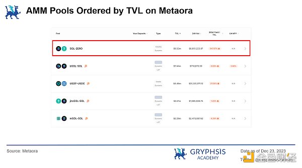 目前,根据 Metaora 数据显示,SOL 和 ZERO 的交易对 AMM 池 TVL 已经达到了 9.32 M,成为了 Metaora 上面 TVL **的 AMM 池。