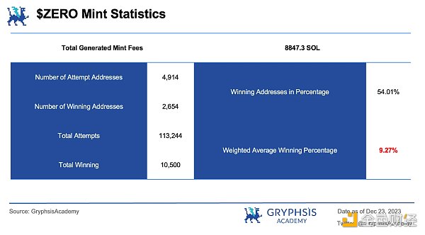 在这部分中,我们将使用在 $ZERO 铸造过程中的统计数据来分析一下 Analysoor 的 Fair Launch 模型是否真正实现了公平的分配。