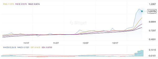 12月25日,Kadena的表现尤为亮眼,其KDA的价格在24小时内上涨了66.8%,一周内更是实现了115.5%的增长,达到1.5美元。其24小时交易量达到了约1.69亿美元,市值达到了约3.87亿美元。这样的表现,无疑让Kadena成为市场上的一个重要观察点。