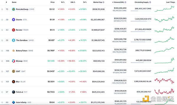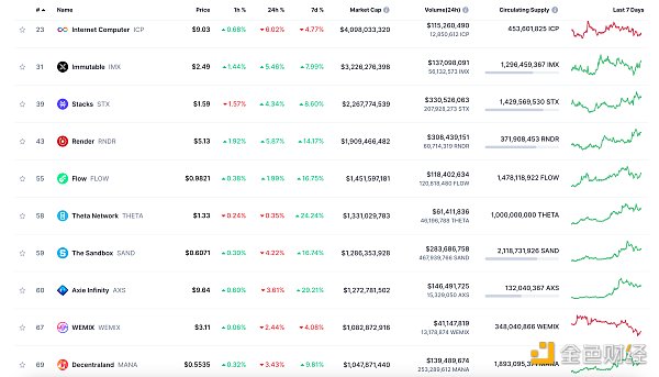 24小时NFT交易量、交易量前十项目 数据来源:Coinmarketcap