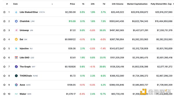 DeFi总市值及前十** 数据来源:coingecko