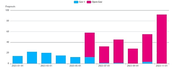2、OpenGov的推出:2023年6月,OpenGov的推出对Polkadot的治理体系进行了改造,强调了社区直接控制和**决策。这一举措加强了社区在Polkadot网络发展中的地位,促进了更**的决策过程。OpenGov 的推出后,提案数量明显上涨。