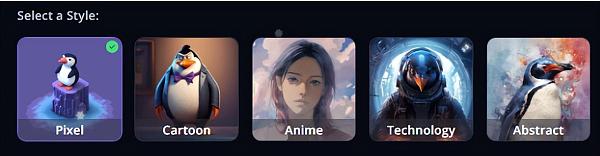 在NFPrompt中,我可以选择不同的风格,比如像素风格、卡通风格、动漫风格、科技风格、抽象风格、电影风格和素描风格等,共有7种类型可供选择。