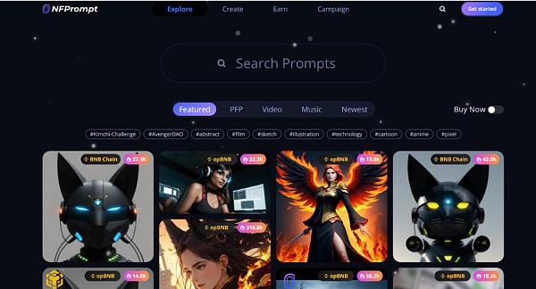 NFPrompt的独特之处在于,它允许用户通过强大的AI工具生成各种内容(AIGC),并在平台上提供了AIGC作品及其相关提示词的交易市场。这一功能性的设计让用户不再需要繁琐的技术操作,即可在NFT领域中展现创意。