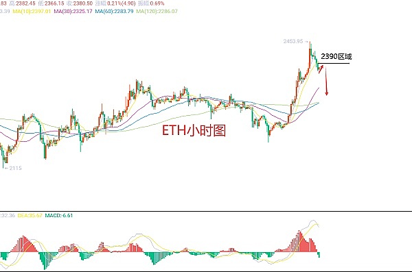 12月28日以太坊(ETH)合约技术面分析:今日方面,大周期日线级别昨日报收大阳线,K线形态上单阴单阳,价格在均线上方且偏离了均线,附图指标跟随上涨形成金叉运行,那么在大周期走势还是整体强势走势,但还是需要关注回撤的风险;短周期小时图昨日日内慢涨欧盘延续,美盘修正后二次上且价格有效向上破位前期高点,今日早间承压回撤,当前K线形态连阴,附图指标粘合死叉向下,那么日内是有回撤需求的,但不能过分看空,且需要关注欧盘的强弱和回撤力度,因此今日ETH短线合约交易策略:反抽2390区域空,止损2415区域,目标看2340-2334区域;