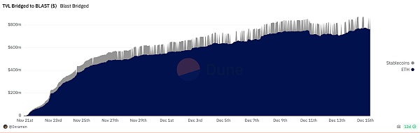 Blast;是一个 Layer;2 网络,由;Blur;创始人;Pacman;推出。基于 Optimistic Rollups 技术,Blast;与以太坊兼容,为开发者和 dApp 提供了便利的接入方式。Blast 的;TVL;和用户数目的快速增长相当引人注目,目前;Blast TVL;已经来到;10;亿美元。