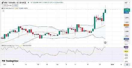交易活动的增加导致了波动性水平的飙升,如目前相互背离的布林线所示。相对强弱指数指标在进入超买区域时向南移动,这给套利价格带来了短期看涨的前景。