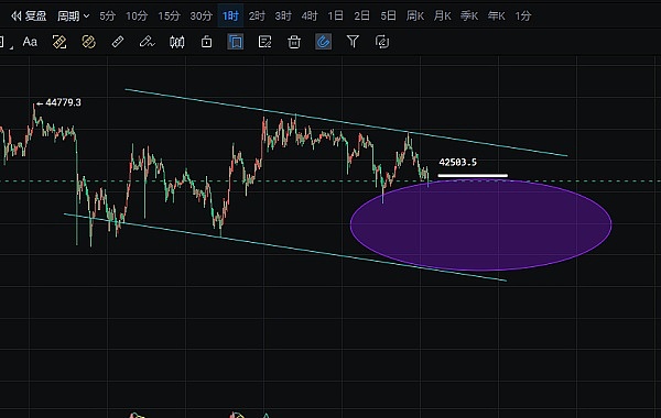 42500-43000分批开空,目标41200-40000,破位看39000附近