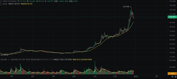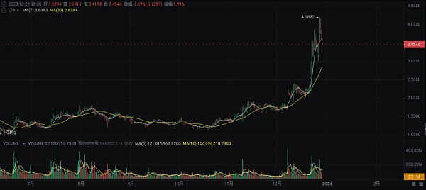 **山寨币也获得了实质性进展:其中包括 Solana (SOL)、Blur (BLUR)、Render (RNDR)、Polygon (MATIC)、Optimi** (OP)、Arbitrum (ARB)、Sei (SEI)、Jito (JTO)、 Sui (SUI)、NEAR Protocol (NEAR) 。
