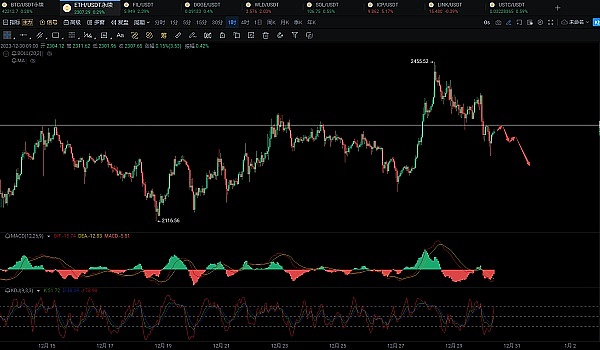行情如愿给到回踩,昨天本人就坚定看空,反弹都是做空的好机会,毕竟上方筹码套牢密集区域。现在的趋势**下移打破平衡,震荡往下给到一种错觉调整以后就要涨,越是这种诱多我们越要谨慎做多,反弹做空短期套住的只是时间,长期是利润。大饼压力位在42500附近,可以空单,目标看41000—40500;以太2320—2330附近是阻力区域,建议反弹空,目标看2150—2200.