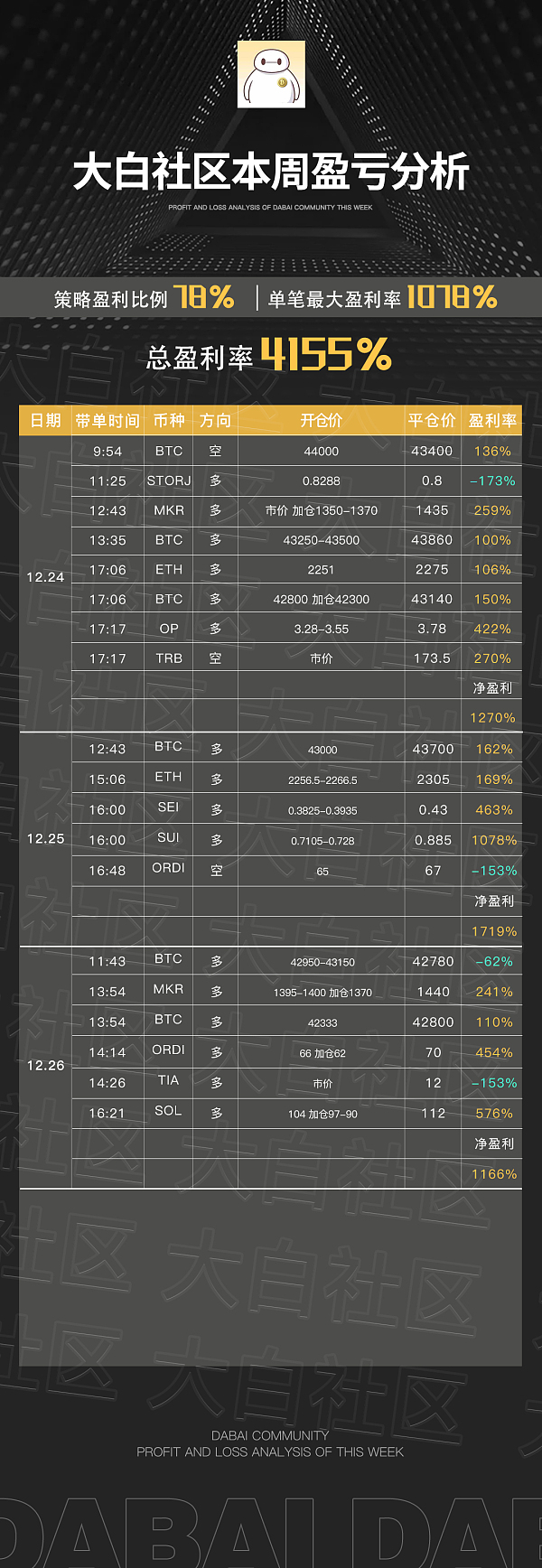 下方是大白社区本周实盘群单子,恭喜跟上的币友,如果你操作不顺,可以来试试水。