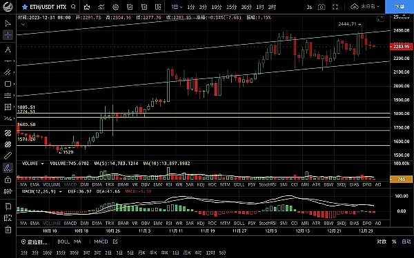 以太坊昨日整天处于震荡阶段,低位跌至2256一线后支撑反弹,高位触及2322一线承压回落,恭喜跟上思路的朋友获利40点,目前币价在2280附近运行,四小时级别整体呈震荡下行反弹高点逐步**,macd空头运行双线死叉向下,k线连阴预计会再次试探ma90 120均线,短期还有下跌需求,近期整体走势与大盘联动呈调整状态,但整体依旧是看涨趋势多头未被打破,加上坎昆升级的利好,预计回调不会太多,大方向回踩低多为主,短期建议高空低多对待,上方压制2310-2350,下方支撑2260-2200
