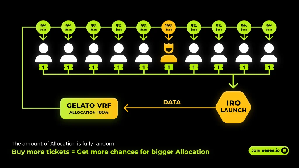 当门票销售累积到卖家设定的总资产价值后,Eesee 的随机分配器将在链上公正地选出获胜者。卖方获得实际资产价值,而一名参与者成为数位资产的新所有者。