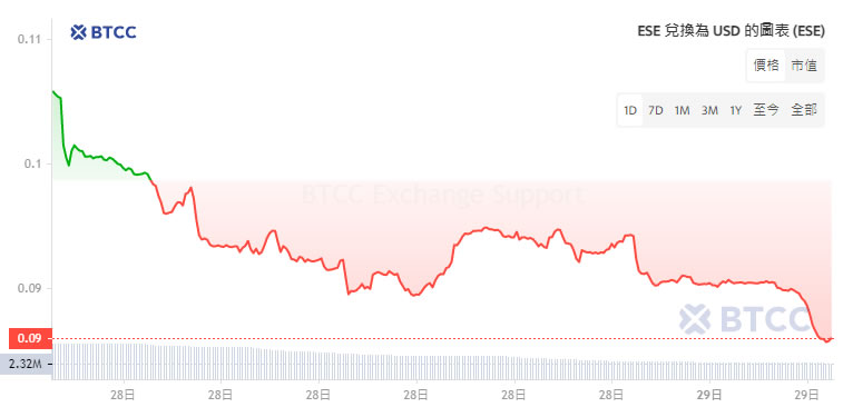 截止4 月28 日,ESE 的交易价格为$0.09961,在过去24 小时上涨了6.37%,一度突破0.1 美元,**达到$0.1101。