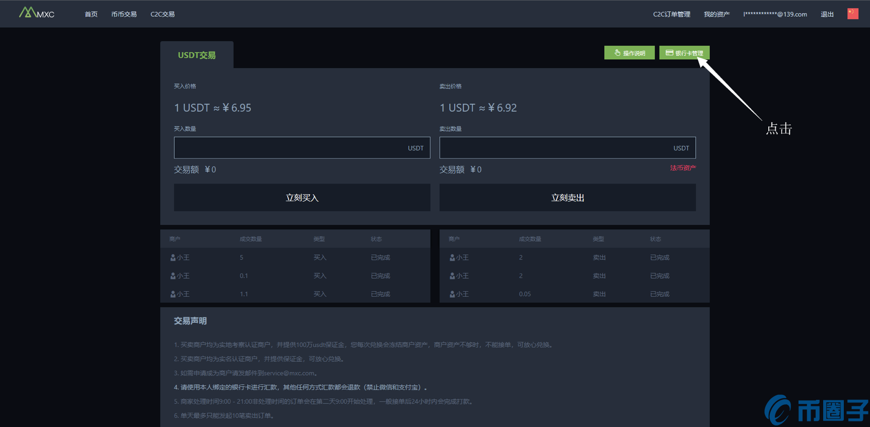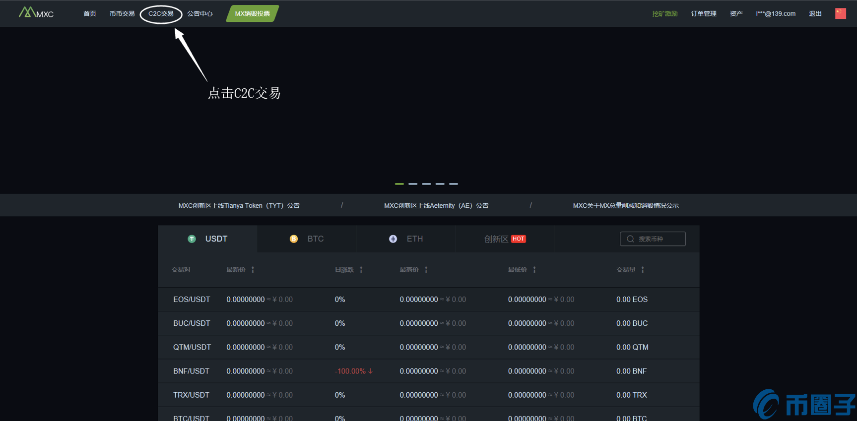 三、 进入C2C交易页面:登陆完成后,请您点击页面左边C2C交易。