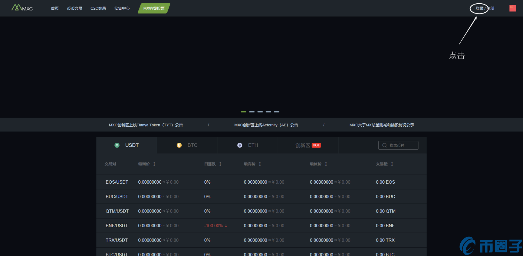 一、 登陆交易所:请您打开抹茶官方网页, 并点击页面右上角登录。