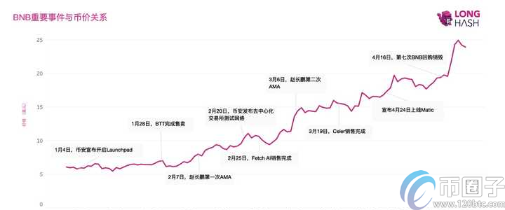无论是 Launchpad 还是 DEX 还是之前的一些行为,币安宣布的时间点和推进的速度都恰到好处,这表明币安团队有着对市场惊人的洞察力。从 2017 年初开始,币安相对于同级别的大型交易所,负面新闻较少,且负面新闻的在投资者中传播的广度较小,这说明币安推出每一个新的模块时都经过了慎重考量,不会出现朝令夕改的情况,另一方面非常重视自身的品牌形象,在 PR 上投入较大的人力物力。下图尝试着对 BNB 币价的起伏和币安今年以来的各种尝试进行说明和分析。