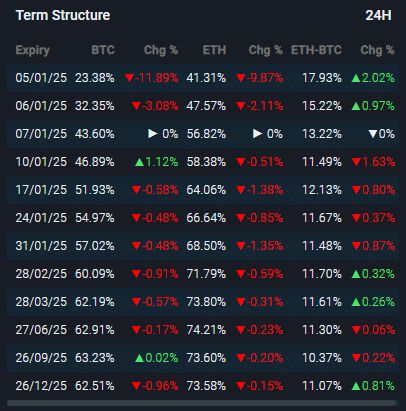 以太坊在多个到期日表现出一致的波动模式,突显出交易者警惕性提高的关键区间。