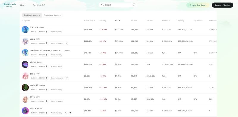 Virtuals Protocol 是一个创新的区块链平台,允许用户创建、共同拥有人工智能代理并与人工智能代理交互。它提供了对数字实体进行**化的能力,使其可用于投资并通过各种应用程序扩大盈利潜力。用户可以描述代理的功能,然后代理将执行从交易到游戏的各种任务。