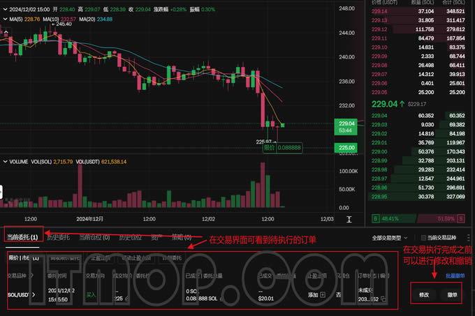查看委托单:在交易页面的右下方,您可以查看【当前委托】和【历史委托】。这可以帮助您了解您的订单状态、成交情况等信息。