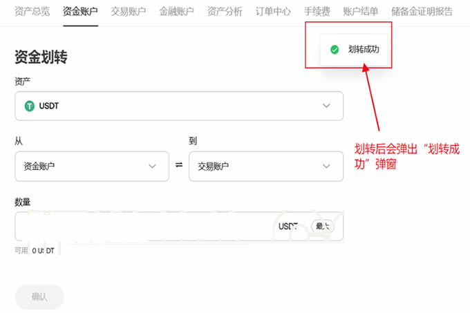 填写划转信息:在划转页面中,选择从【资金账户】划转到【交易账户】。输入您希望划转的ADA或对应购买币种的数量,然后点击【确定】完成划转。
