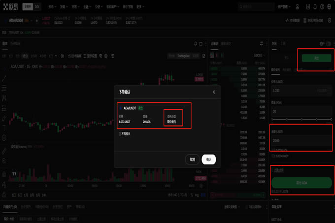 下单买入:点击【买入】按钮,然后选择【限价委托】。在限价委托中,输入您希望买入ADA的价格和数量。如果您希望快速成交,也可以选择【市价委托】,但请注意市价委托可能会以当前市场价或稍高的价格成交。