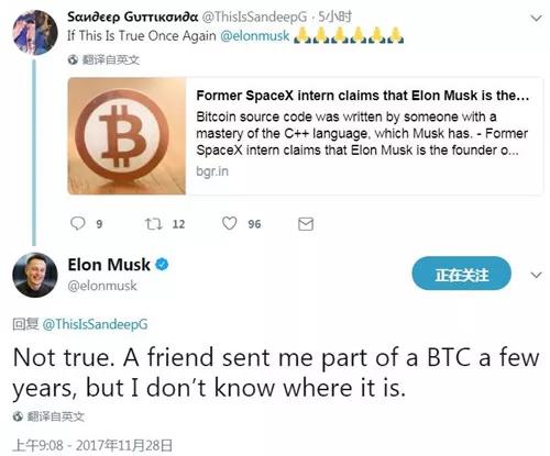 日前,有外媒报道称,SpaceX前实习生Sahil Gupta认为,Space X创始人、特斯拉CEO埃隆·马斯克就是传说中的比特币的创始人中本聪(Satoshi Nakamoto)!不过被当事人否定。