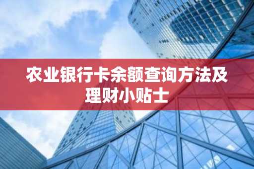 掌握农业银行卡余额查询方法,有助于用户更好地管理个人财务,通过理财小贴士,让您的资金在保值增值的同时,为您的美好生活添砖加瓦。