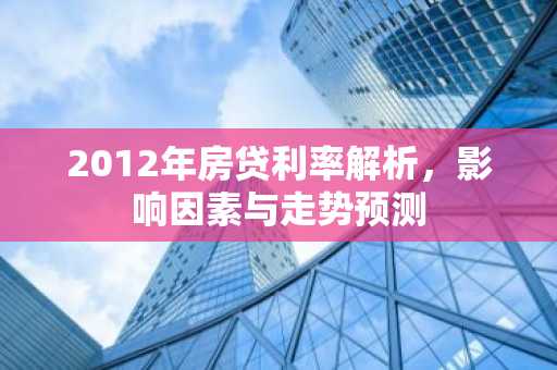 2012年,我国房贷利率经历了复杂多变的调整过程,从宏观经济的调控角度出发,本文将对2012年房贷利率的相关知识进行解析,并分析其影响因素及未来走势。