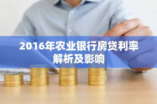 2016年,我国房地产市场经历了诸多政策调整,其中农业银行房贷利率的变化备受关注,从财经角度来看,以下是对2016年农业银行房贷利率的相关知识介绍及影响分析。