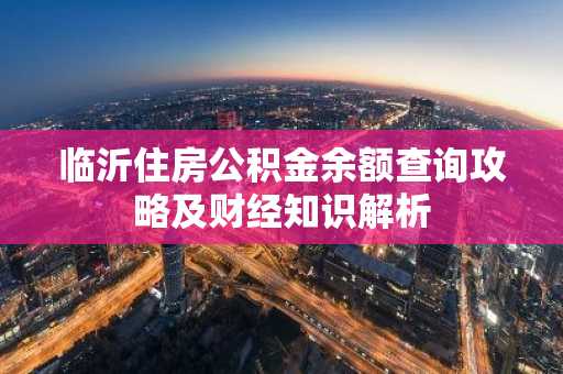 随着我国经济的快速发展,住房公积金作为一种重要的住房保障制度,越来越受到广大职工的关注,临沂作为山东省的重要城市,其住房公积金余额的查询方式及财经知识值得我们深入了解。