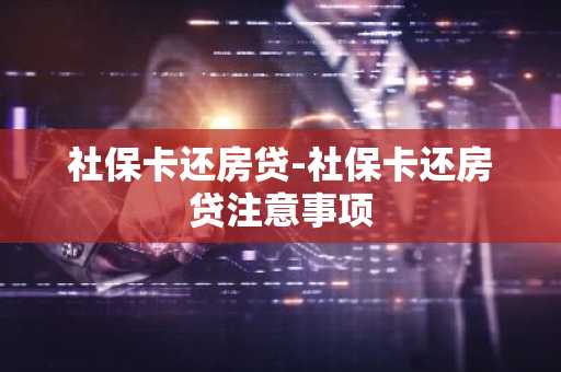 《社保卡赋能房贷:解读社保卡还房贷政策及操作指南》