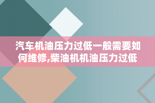 汽车机油压力过低一般需要如何维修