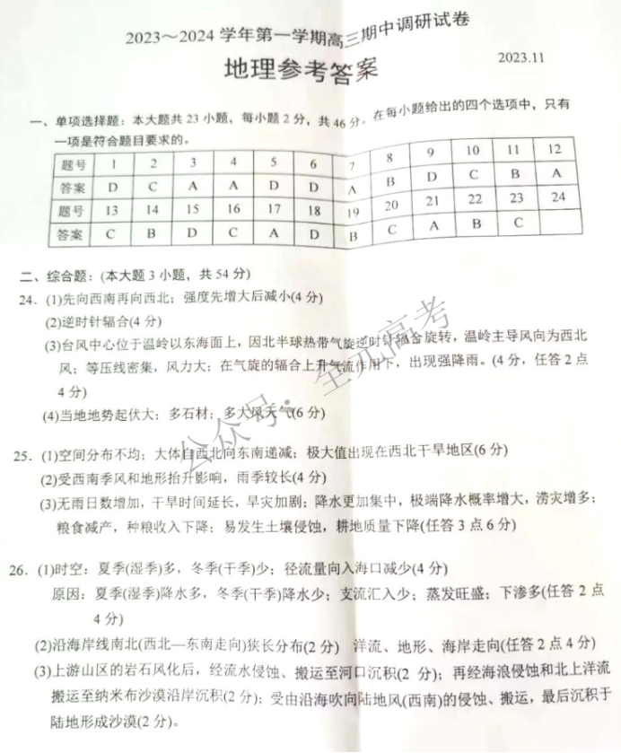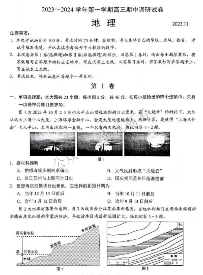 2024江苏省苏州四市五区高三期中考试于近期开考,本次考试对考生影响力大试题参考价值大,为方便大家复习,小编在下文为大家整理了江苏省苏州四市五区2024高三期中考试的地理试题及答案,供大家查看!