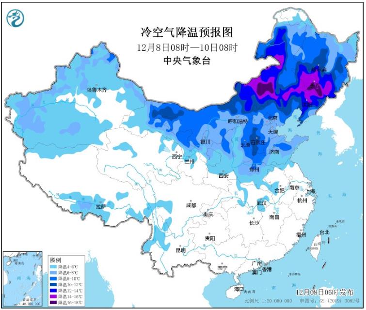 预计,8日至9日,受新一轮冷空气影响,西北地区东部、华北、黄淮、东北地区气温将下降4~8℃,内蒙古中东部、东北地区中南部降温幅度可达12℃以上;上述地区伴4~6级偏北风,阵风7~8级,北部海域有5~7级风、阵风8级。内蒙古东北部、东北地区有小到中雪或雨夹雪,黑龙江北部局地大雪。