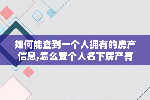 以上内容就是关于怎么查个人名下房产的问题**解答了,如果对你有所帮助的话,请收藏关注本站,这里将更新更多关于怎么查个人名下房产的内容。