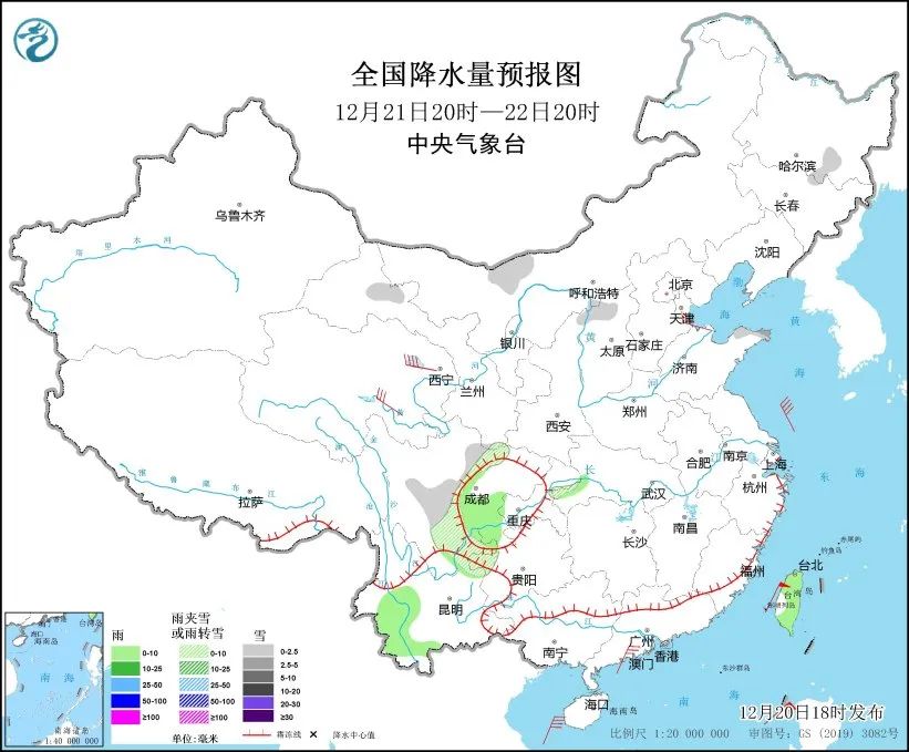 12月21日20时至22日20时,甘肃部分地区,山东半岛、川西高原的部分地区将再次迎来降雪。