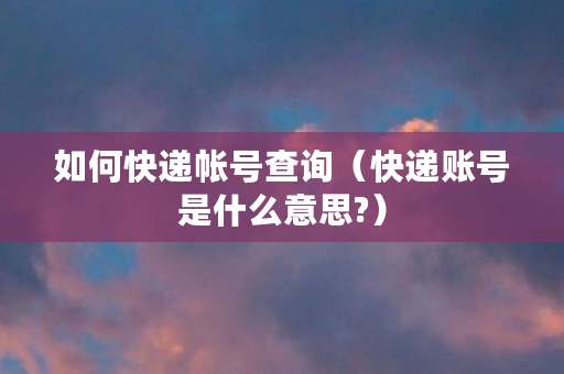 以上**就是关于快递账号是什么的详细介绍,如果对你有所帮助或希望获取更多快递账号是什么的资讯内容,欢迎收藏关注本站。