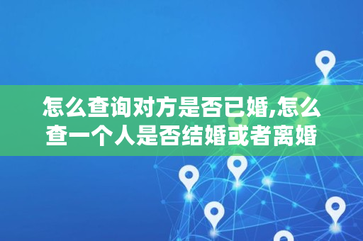 以上内容就是关于怎么查一个人是否结婚的问题**解答了,如果对你有所帮助的话,请收藏关注本站,这里将更新更多关于怎么查一个人是否结婚的内容。