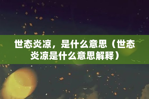 以上**就是关于世态炎凉是什么意思的详细介绍,如果对你有所帮助或希望获取更多世态炎凉是什么意思的资讯内容,欢迎收藏关注本站。