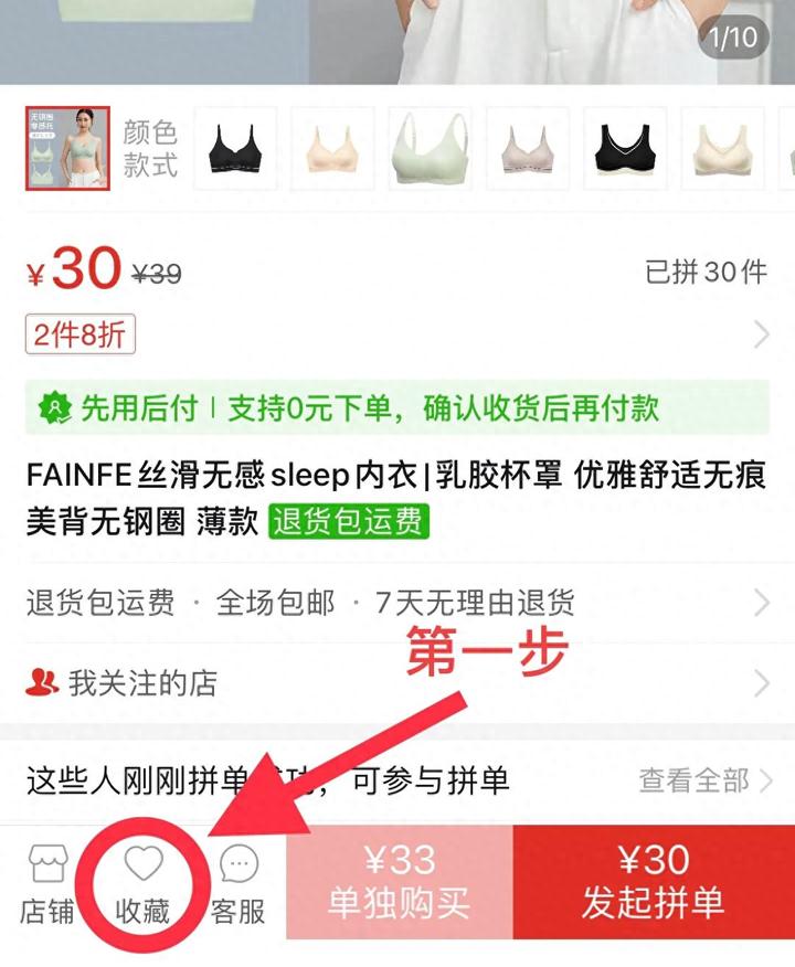 哈哈,答案是肯定的。那么拼多多上怎么一单买不同颜色和尺码呢?在拼多多上是没有购物车功能的,但是有收藏商品的功能,在这里,我们就利用到了它的收藏的功能来实现我们的目的。下面还是以一款女式内衣为例,分步骤告诉你: