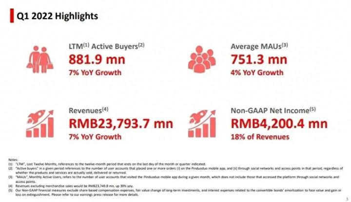 上个月,拼多多公布截至2022年3月31日止**季度未经审计的财务业绩。数据显示,今年**季度,该季度拼多多总营收237.937亿元,较上年同期的221.671亿元增长了7%。