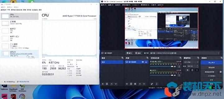 在正式进行之前,我们还需要对电脑的性能做基本的测试,像这里我可以先在不开游戏的情况下看看,观察对系统的资源占用有多少。的编码部分通常有两个选择,看你要用CPU还是显卡来推流,这部分就看你哪个硬件更厉害,或是说资源更充足,那像我这次拿的是R7处理器,理论上多核性能是很充足的,所以我选择让他来做编码。