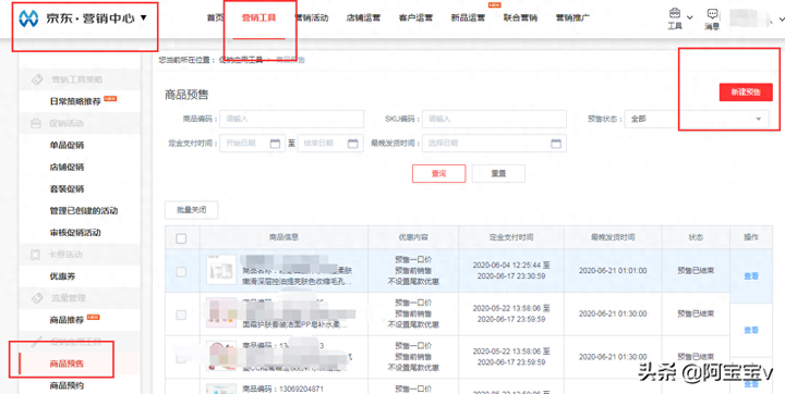 商家后台—>营销**—>营销工具—>商品预售—>新建预售