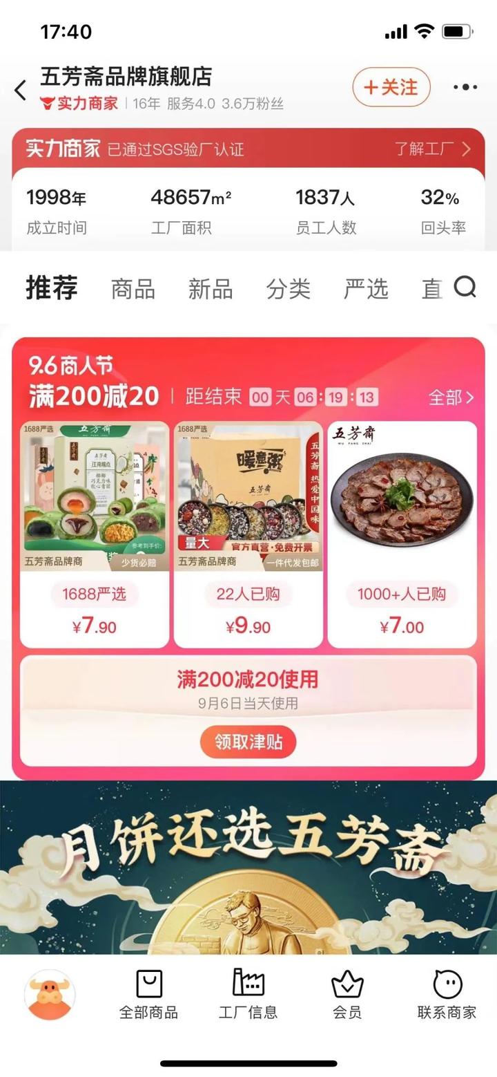 食品老字号五芳斋通过和1688商业化**的深度合作,沉淀了站内外配合联动、应季快速霸屏起爆的链路,合作了支付宝端午主题红包、品牌霸屏、SKA驾驶舱、1688严选等产品,在前期的站内强势品牌曝光,锁定端午目标人群后,进行后续其他产品的人群追投,并做好人群精细化圈选流转,大客户业务团队定向跟进线索,**获得全域销售的增长。