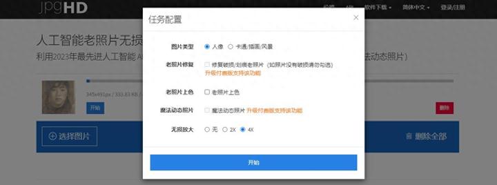JPGHD是一款基于人工智能技术的在线老照片修复软件,可以将老照片转化为高清数码照片。