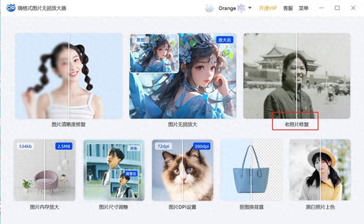 嗨格式图片无损放大器还提供了多种画质修复、人像增强、去噪等功能,能够进一步优化老照片的修复效果,软件界面简洁,操作简单,小白可以轻松上手操作!