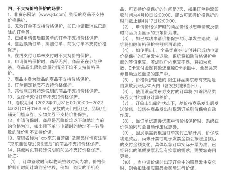 下面是不支持价保的场景,别看洋洋洒洒列了十几条就吓退了,其实我们能遇到的没几条,而且京东实际执行的时候却不**是按这个规则来的,比如第6条写着“商品无货不支持价保”然而学士不止一次商品无货价保成功了,比如上面那台价保400多的冰箱就是!而且学士还是自己自助申请价保成功的,也就是说京东的价保系统根本没有在判定当前是否有货,否则学士不可能几次三番都自助价保成功。价保规则肯定要看,但尽信规则不如无规则,毕竟事在人为。