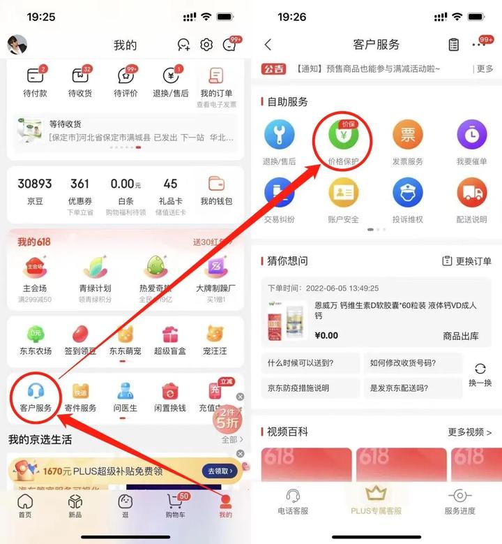 价保在京东APP-我的-客户服务-价格保护,价保页面底部那个“一键价保”一般不建议用,特别是在你账号有大额全品券的时候,至于为什么,下面细说。